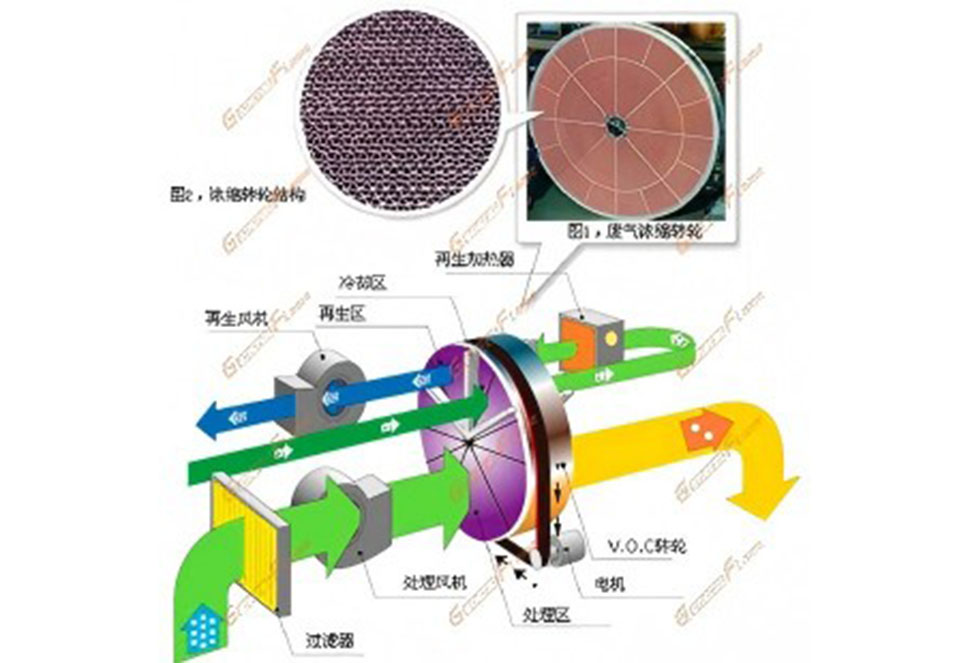 - العملية المشتركة لأكسدة عجلة المكثف: مصممة لحجم الهواء المرتفع للغاية، وظروف التركيز المنخفض. يتم أولاً تركيز غاز العادم وتقليل حجمه قبل معالجة الأكسدة، مما يوفر حلاً اقتصاديًا وفعالاً.