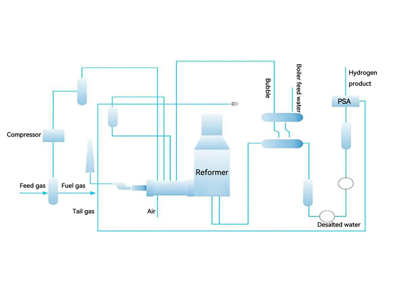 SMR هي عملية كيميائية تستخدم لإنتاج الهيدروجين على نطاق واسع في صناعة تصنيع الغاز. تتضمن العملية تفاعلين كيميائيين يؤديان في النهاية إلى تحويل الماء والميثان (عادة في شكل غاز طبيعي) إلى هيدروجين نقي وثاني أكسيد الكربون. تتم بعد ذلك تنقية الهيدروجين وفقًا لمتطلبات النقاء التي يحددها العميل (تصل إلى 99.999%) لاستخدامه في توليد الطاقة، وتكرير النفط، وعدد لا يحصى من العمليات الكيميائية، والعديد من التطبيقات الصناعية الأخرى.